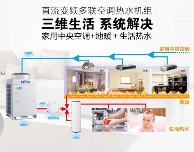 集直流變頻技術(shù)、空氣源熱泵技術(shù)和熱回收技術(shù)于一體,實(shí)現(xiàn)中央空調(diào)+地暖+熱水三大功能于一體,成為家庭別墅、休閑會所的新寵,榮獲由國家三大部及國家質(zhì)量檢驗(yàn)檢疫總局聯(lián)合頒發(fā)的年國家重點(diǎn)新產(chǎn)品證書