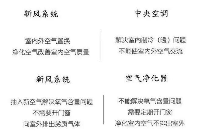 在我們的住宅市場環(huán)境中,中央空調(diào)是室內(nèi)進行空氣可以循環(huán),主要研究解決中國室內(nèi)冷熱問題,為了提高節(jié)能的考慮,空調(diào)是在密閉空間內(nèi)對空氣的制冷技術(shù)或者制熱,一般企業(yè)不會從室外活動引入我國空氣。而新風系統(tǒng)是從室外把新鮮空氣吸入室內(nèi),通過各種管道管理系統(tǒng),輸送到每個不同房間,同時把室內(nèi)的污濁空氣能夠通過回風管道排出室外,這樣在不開窗戶的前提下,實現(xiàn)城市空氣的良好發(fā)展置換。